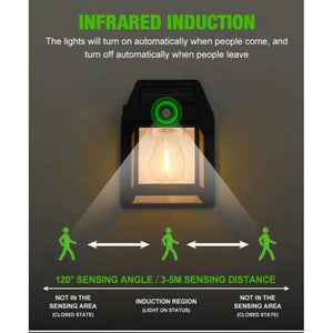 Smart Sensor Technology: Our wireless solar wall light features a responsive dusk-to-dawn sensor, covering an irradiating area of approximately 10,000cm² to 30,000cm². With multiple modes, the first setting activates when people approach and turns off when they leave, the second setting keeps the light always on when someone is around and dims slightly when no one is present, and the third setting maintains a constant ember-like glow.